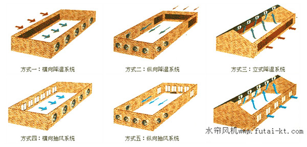 很多人都知道水簾可以降溫,那如果沒有負壓風機的配合將施展不了它的價值了,今天來分享的是水簾降溫系統是怎么個降溫原理和水循環制造給工廠持續不斷廉價的冷氣輸送的。既然你能看到這樣的降溫方式可以里面清晰明了它的降溫方式后再了解下它的安裝方式都有幾種如圖: